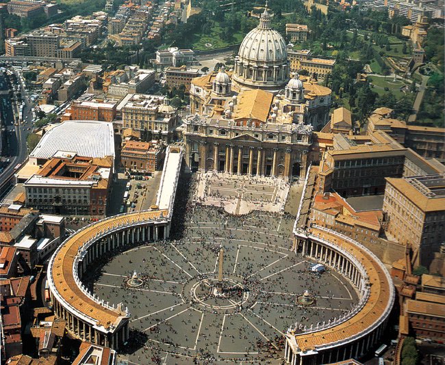 Это одна из главных достопримечательностей не только Ватикана, но и всей Италии. По форме площадь напоминает замочную скважину. Площадь окружена изящной дорической колоннадой, количество колонн в которой достигает 284 штук.