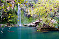 Водопад Куршунлу и озеро Нилуфер расположены всего в 18 километрах от Антальи. Это настоящий уголок дикой природы, бережно охраняемый человеком. Вода Куршунлу кристально чистая, и на солнце приобретает своеобразный бирюзовый оттенок. Там можно увидеть разноцветных рыбок и белоснежных уток, плавающих в тени платанов. Со всех сторон водопад окружен деревьями и кустарниками, а территория перед спуском к воде поросла огромными растениями, похожими на гигантских пауков. Все содержится в идеальной чистоте, турки очень трепетно относятся к этому месту.